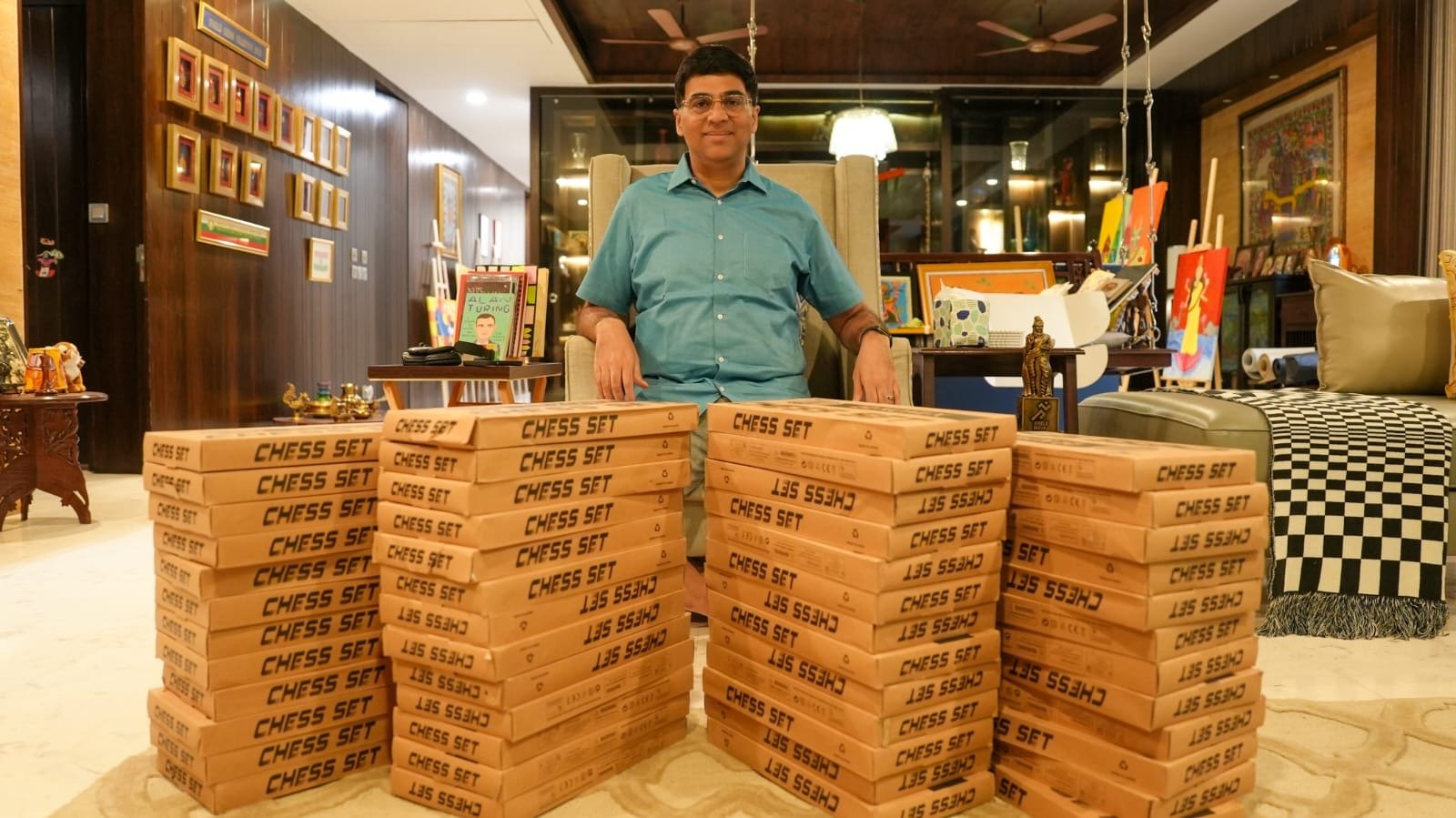இதனை கொண்டாடும் விதமாகவும் மாணவர்களிடையே செஸ் ஆர்வத்தை ஊக்குவிக்கும் விதமாகவும், மாநில அளவிலான செஸ் போட்டிகளில் வெற்றி பெற்ற மாணவ, மாணவியருக்கு விஸ்வநாதன் ஆனந்த் தனது சொந்த முயற்சியில் செஸ் போர்டுகளை ஆட்டோகிராஃபுடன், அன்பளிப்பாக வழங்கினார்.